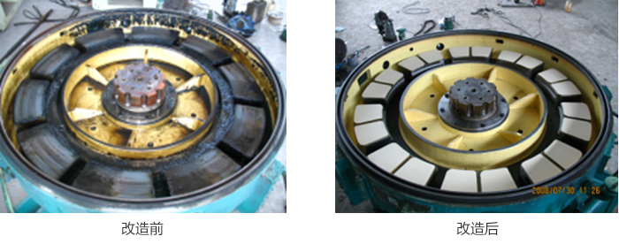 2008年6月客户电厂一期工程投产发电,投运2台单机容量330MW火电机组,每台锅炉配有5台磨煤机,投入运行后发现减速机推力轴瓦温度高,不能满负荷运行,其中4台磨煤机先后出现塑料瓦烧瓦的故障,严重影响机组正常发电。检修更换原厂国产的备品后,仍然存在运行温度高,不能正常运行,给电厂造成很大的经济损失。