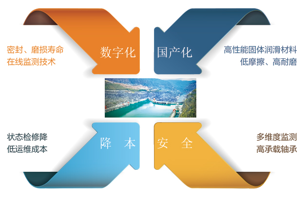 基于高性能固体润滑材料、解决大型关节轴承国产化难题,自主开发的位移监测装置、寿命监测原件、状态识别传感器,通过数字化赋能,实现对闸门运行开度,轴承寿命、以及密封监测报警。