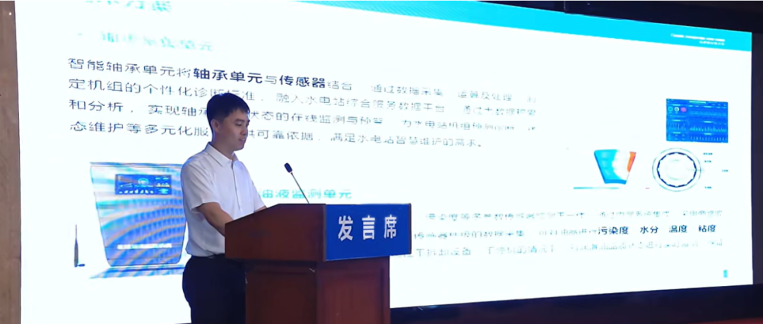Chairman Wei Dong attended the meeting as a representative of a member unit and delivered a speech. Chief Engineer Yang Liang presented a keynote speech titled "Application Research on Intelligent Bearing Systems for Hydroelectric Generator Units." The innovative technological achievements shared in the presentation precisely address the current safety operation requirements for the frequent start-stop cycles of units in integrated hydropower-wind-solar power stations. This provides practical reference for equipment upgrades under the new power system framework, sparking extensive attention and lively discussions among the attending guests.